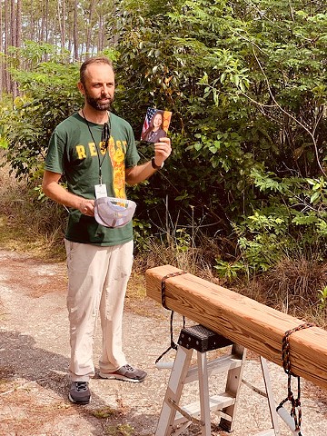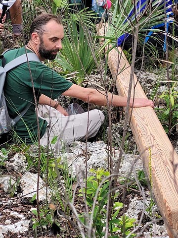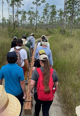 This project entails the carrying, by hand, of a salvaged Dade county pine beam (six by six inches by sixteen feet long) into the heart of Long Pine Key trail, 2 1/2 miles west of the campground trail entrance, by a rotating group of pallbearers and attendees, to deposit it among the pines standing there. A modest ceremony will accompany the event, commencing with a Land Acknowledgment. Other than sanding off the patina and smoothing the edges, the beam will remain as it was found. The beam was salvaged from a house built in 1925, about 1 mile west of downtown Miami. The house was demolished in 2017. This project represents a profound recognition of land use by the National Park Service, and will highlight ecological concern for the Everglades, sea level rise (which threatens the pine rockland ecosystem), and the power of community, as well as the human need to engage with the land as a vector for embracing our collective mortality.